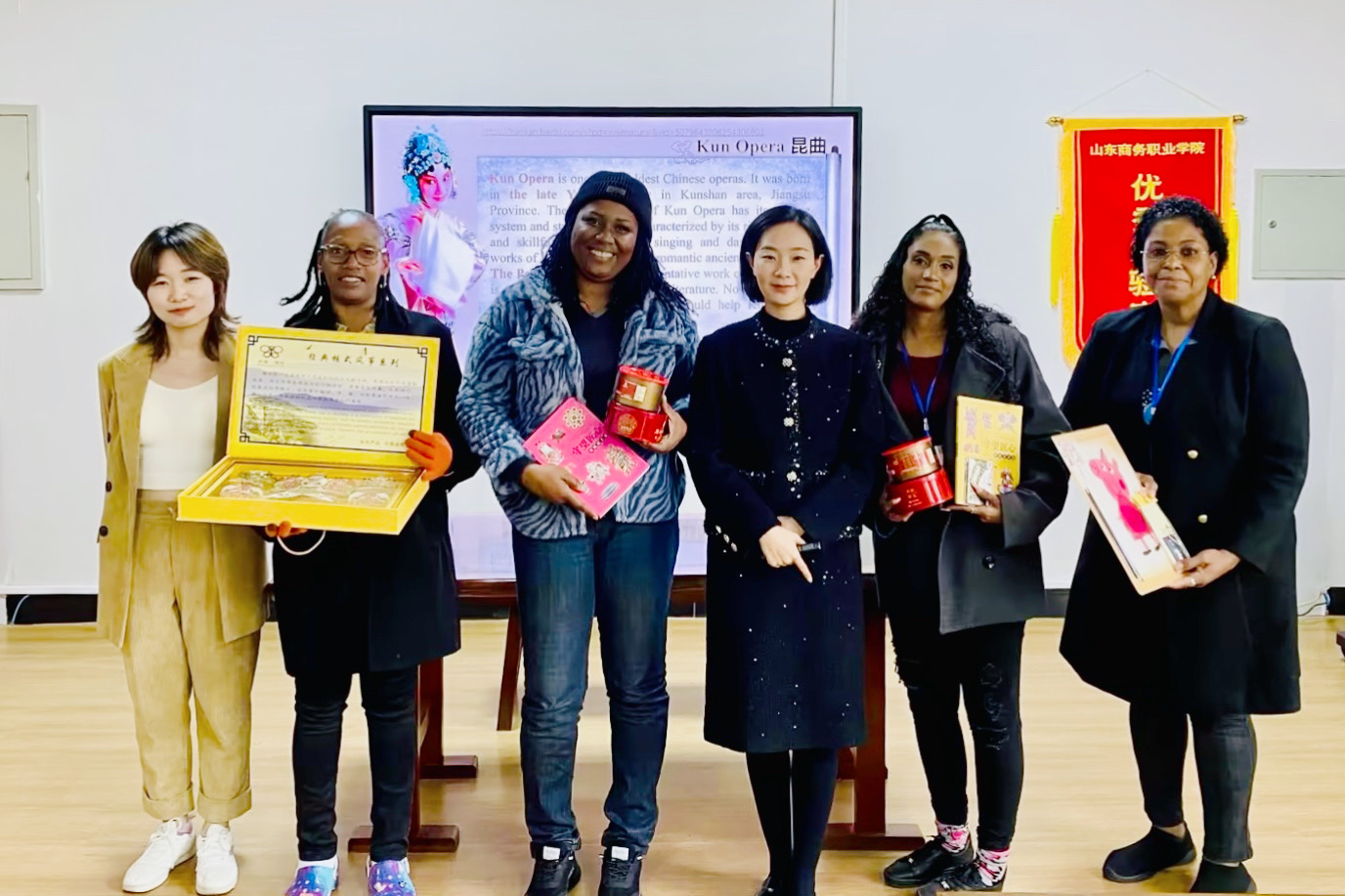 本站讯 10月27日至11月4日,一场跨越山海的文化交流活动在我校文化旅游学院精彩举办。来自特立尼达和多巴哥共和国(简称特多)的四位外国友人与旅游管理教研室和应用英语教研室的老师,联合开启了“跨山越海,以艺通心”特多文创设计师资培训之旅。此次培训内容丰富多样,涵盖了中国旅游文化、中国戏曲文化、中国饮食文化、非遗特色文化与旅游文创、旅游新媒体营销和旅游定制旅行策划等理论课程和实践教学课程。