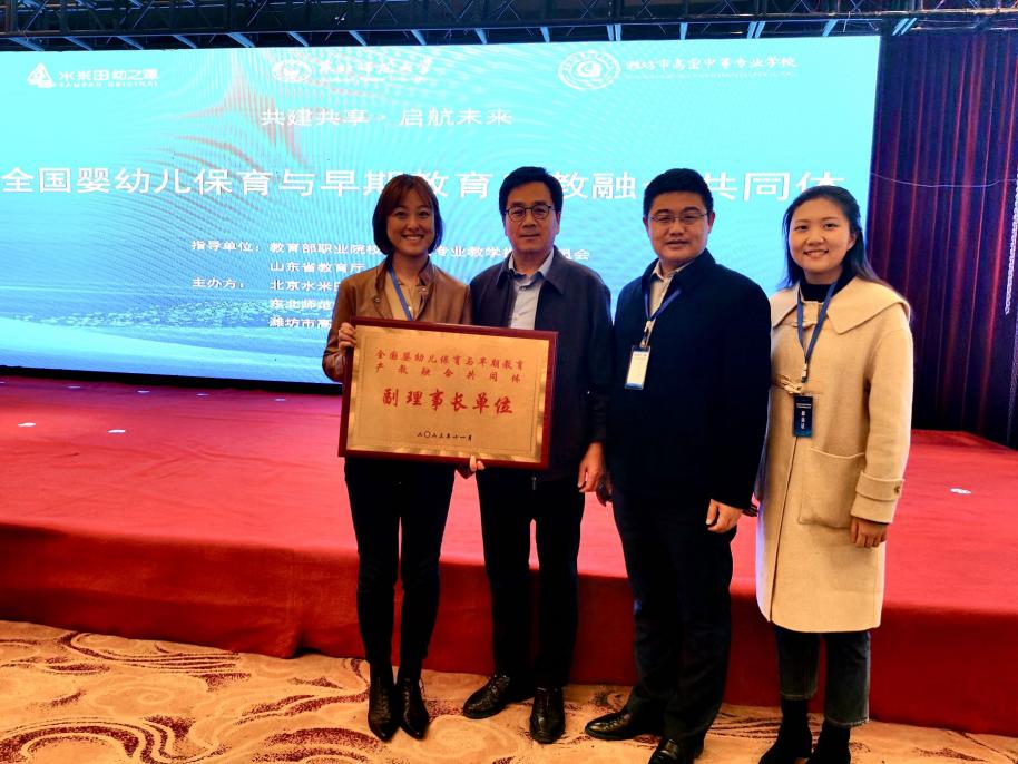 本站讯 11月12日,全国婴幼儿保育与早期教育产教融合共同体成立大会(以下简称“共同体”)在潍坊高密顺利举行。山东商务职业学院被授予副理事长单位,文化旅游学院院长李刚、学前教育、婴幼儿托育服务与管理专业相关教师参会。