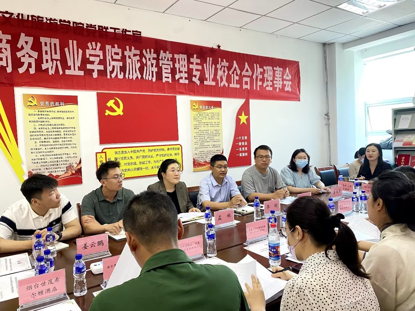 本站讯 6月6日,旅游管理专业2023年度校企合作理事会暨校外综合实训人才双选会在一体化教学楼隆重举行。12家旅游行业理事会成员单位有关负责人、文化旅游学院院长李刚、副院长孟琳及旅游管理教研室教师、辅导员等参加了此次活动。