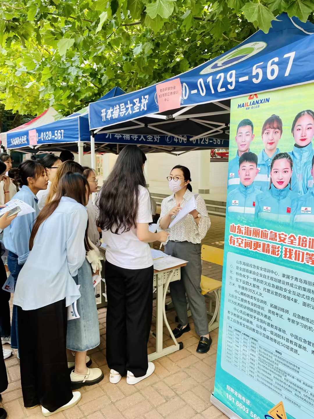 随后,人才双选会拉开帷幕。山东全家福旅游开发集团、蓬莱三仙山风景区、烟台张裕酒文化博物馆、烟台蓝海国际旅行社、烟台市研学教育科技有限公司、青岛海丽应急培训中心等来自省内的12家优质企业与2021级旅游管理全体同学展开了热烈互动。张裕博物馆已经是第10年参加双选,企业负责人对我校学生给予了高度评价,同学们良好的专业技能与优良的职业素养在烟台市同类高校中是出类拔萃的。据悉,本次双选会学生和用人单位初步意向的学生占90%以上。