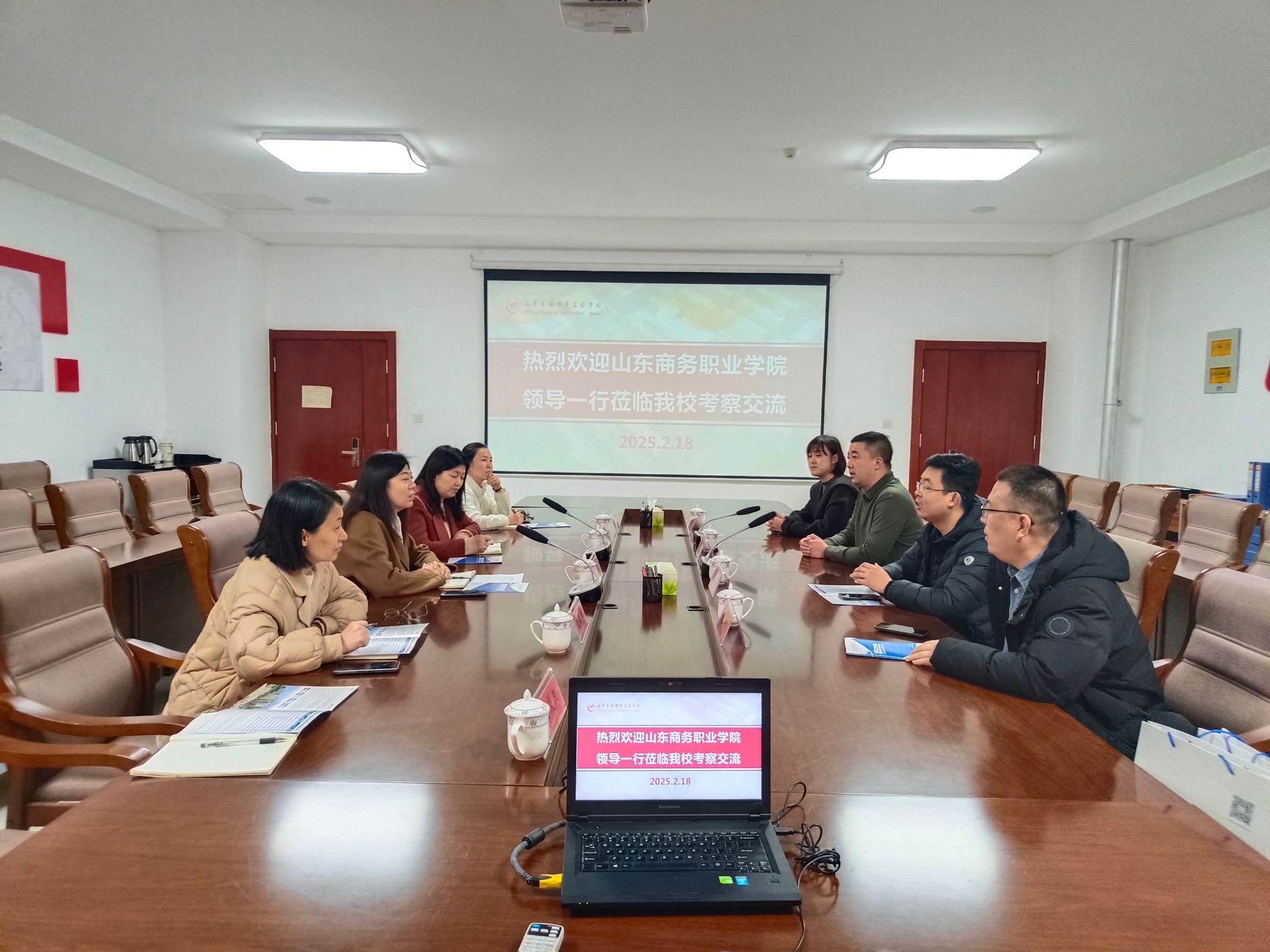 教师团队抵达后,受到淄博工业学校领导和教师的热烈欢迎。双方迅速展开交流,淄博工业学校教务处处长夏雪详细介绍了学校的发展历程、办学特色以及在工科领域取得的成就,展现了学校深厚的教育底蕴和创新活力,为后续的交流奠定了良好基础。