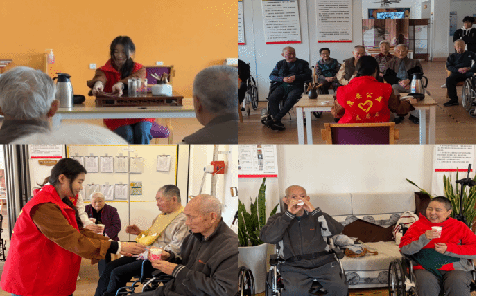 活动中,TS调酒与茶艺社的同学们身着统一的志愿者服装,手捧精致的茶具,为老人们精心泡制了一壶壶香气四溢的好茶。老人们围坐在一起品茶闲聊,脸上洋溢着开心的笑容。茶艺社以传承和弘扬中华茶文化为己任,通过茶艺表演向社会大众普及茶的历史。这次表演的是绿茶的泡法,TS 调酒与茶艺社的24 级酒1班朱欣然同学还为老人们介绍了绿茶清热解毒、提神醒脑的功效,多位资深茶艺爱好者与青年学子围聚茶席,交流传承数百年的工夫茶技艺,两代人在袅袅茶烟中碰撞出传统文化与现代创意的火花。
