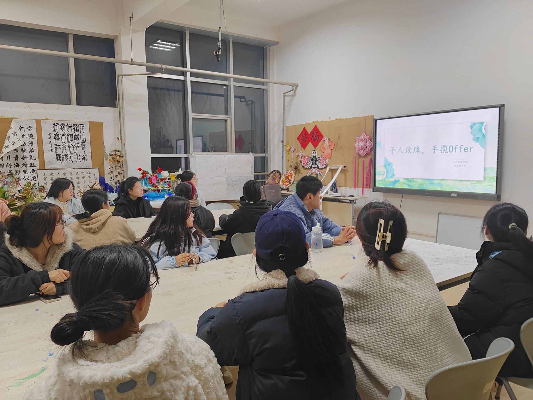 本站讯 为深化“一站式”学生社区育人功能,推动就业服务精准化、全程化,3月26日,文化旅游学院依托“一站式”学生社区平台,在学前美术手工教室举办“予人玫瑰,手揽offer”职场分享活动。本次活动吸引了23级、24级各专业的同学积极参与。