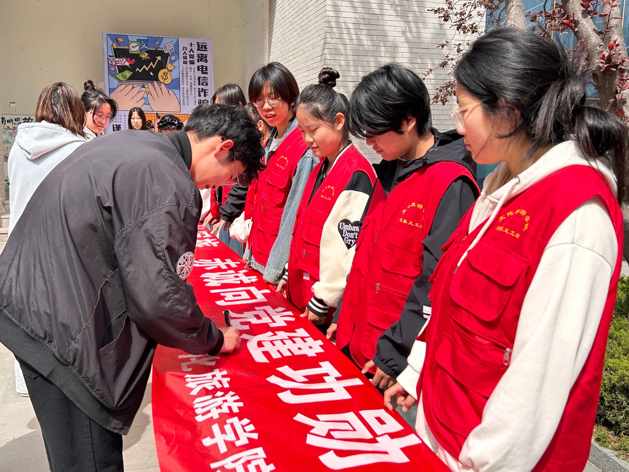 多元赋能,厚植爱国情怀。除了政策解读与榜样引领外,学院还通过多种途径营造浓厚的征兵宣传氛围。在校园内通过悬挂横幅、张贴海报、播放宣传片等多种途径,营造了浓厚的征兵宣传氛围。同时,组织开展征兵主题班会、征文比赛、演讲活动等,鼓励学生们积极参与,在互动交流中进一步深化对国防意义的认知,厚植爱国强军情怀。