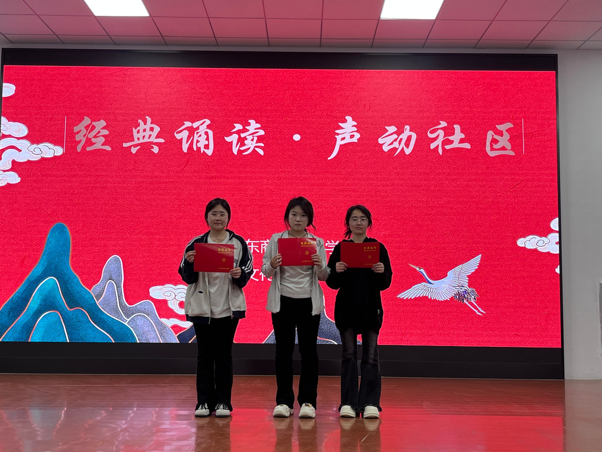比赛现场气氛热烈,来自学院不同专业的学生踊跃参与。同学们以饱满的热情、激昂的语调,诵读了古诗词、现代诗歌、散文等经典文学作品。选手们通过声音传递文字之美,将经典作品的魅力展现得淋漓尽致。在古诗词诵读环节,选手们仿佛穿越时空,与古人对话。《将进酒》的豪迈奔放、《水调歌头·明月几时有》的深情婉约,在选手们的精彩演绎下,让观众深刻感受到了古诗词的韵味和意境。现代诗歌和散文的诵读同样精彩纷呈,选手们用富有感染力的声音,诠释着作品的内涵和情感,引发了现场观众的强烈共鸣。选手们在诵读过程中展现出了扎实的语言功底和良好的艺术素养。经过激烈角逐,阎子琪同学的《将进酒》获得一等奖、杨天玥同学的《水调歌头·明月几时有》获得二等奖、王雅琦同学的《赤壁赋》获得三等奖。