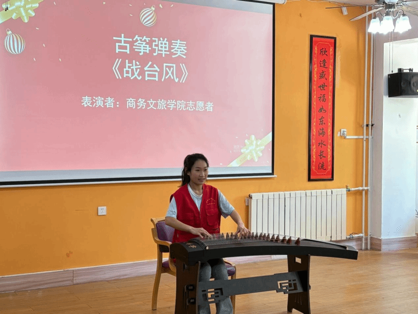 为了让这场生日会成为老人们心中难忘的温暖时刻,志愿者们提前数日便精心筹备。活动当天清晨,志愿者们活力满满地抵达颐养院。他们首先为寿星们送上最真挚的生日祝福。随后,精彩的文艺表演拉开帷幕。悠扬婉转的歌曲《伊犁河的月夜》缓缓响起,那如梦如幻的旋律仿佛带着老人们来到了宁静的河畔。紧接着,《浸春芜》清新明快的曲调如同一股春风,轻轻拂过老人们的心田。而灵动的古筝曲《战台风》则将现场气氛推向了高潮,志愿者的指尖在琴弦上轻盈舞动,将这首曲子的磅礴气势展现得淋漓尽致。每一个节目都饱含着志愿者们对老人的深厚情谊。现场的老人们都被志愿者们的这份用心和真诚所打动,脸上绽放出幸福的笑容,温暖而动人。