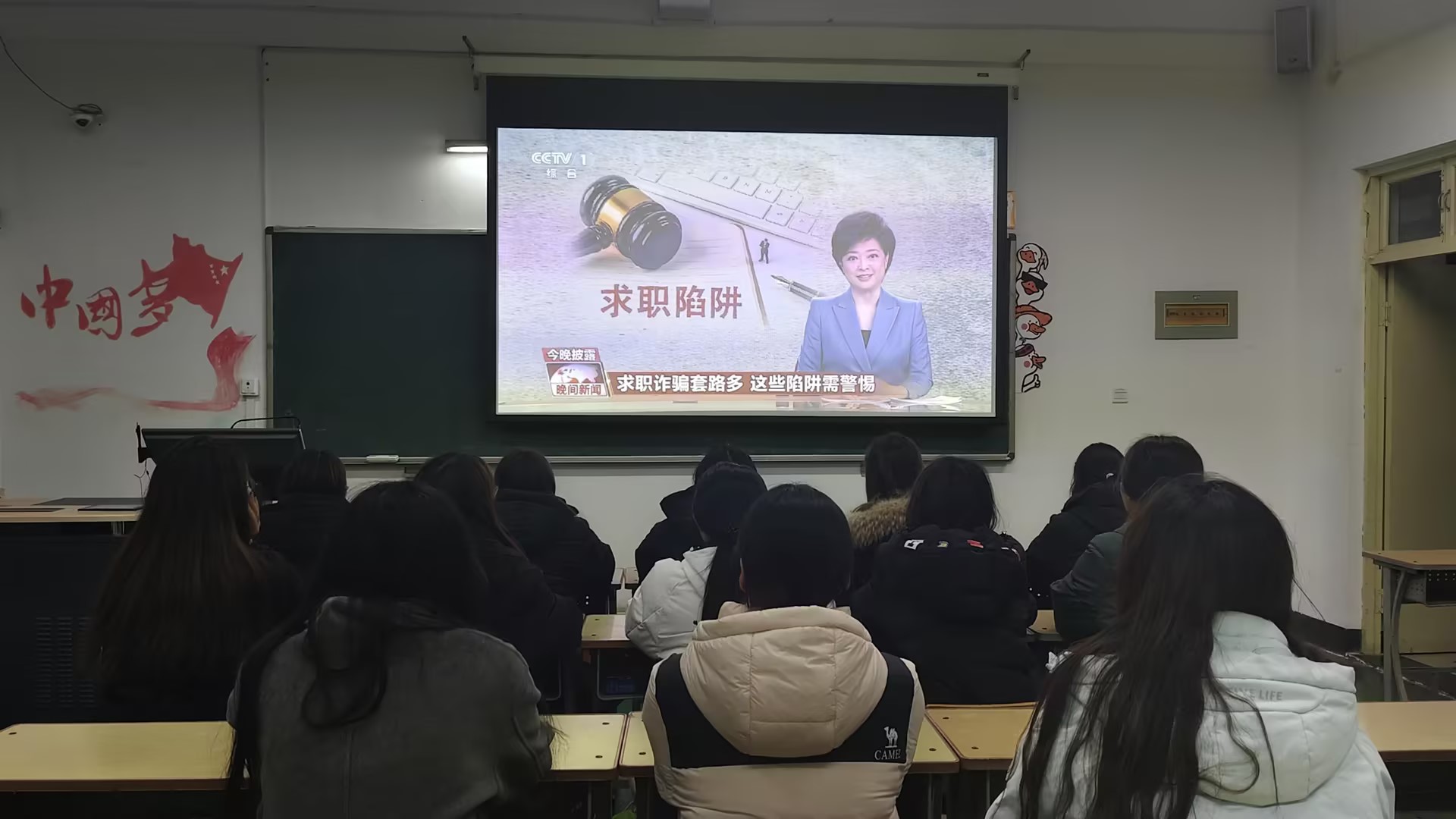 活动通过观看视频形式进行,视频中用一组数据揭示了求职诈骗的严峻性,让在场同学深刻认识到,就业防诈骗绝非“纸上谈兵”,而是关乎自身权益的“必修课”。随后,结合学院各专业的就业特点,视频进行了针对性的诈骗陷阱剖析与防范指导,手把手教学生掌握“查资质、核信息、拒预付、签合同”的四步防骗法。互动环节中,同学们纷纷分享感悟。24级应用英语3班的韩千惠同学在参与后深有感触地说道,“此次活动让我意识到,看似光鲜的‘海外公司’‘高端岗位’背后可能隐藏着重重陷阱。未来求职,我一定会通过官方渠道反复核实企业信息,绝不轻信口头承诺,也不会轻易向陌生机构转账缴费。”25级应用英语2班的李瑞格同学意识到,“求职不仅要积极,更要保持警惕,那些‘高薪低门槛’的机会,往往是最大的陷阱。”同学们表示,会把这些防骗知识分享给室友。