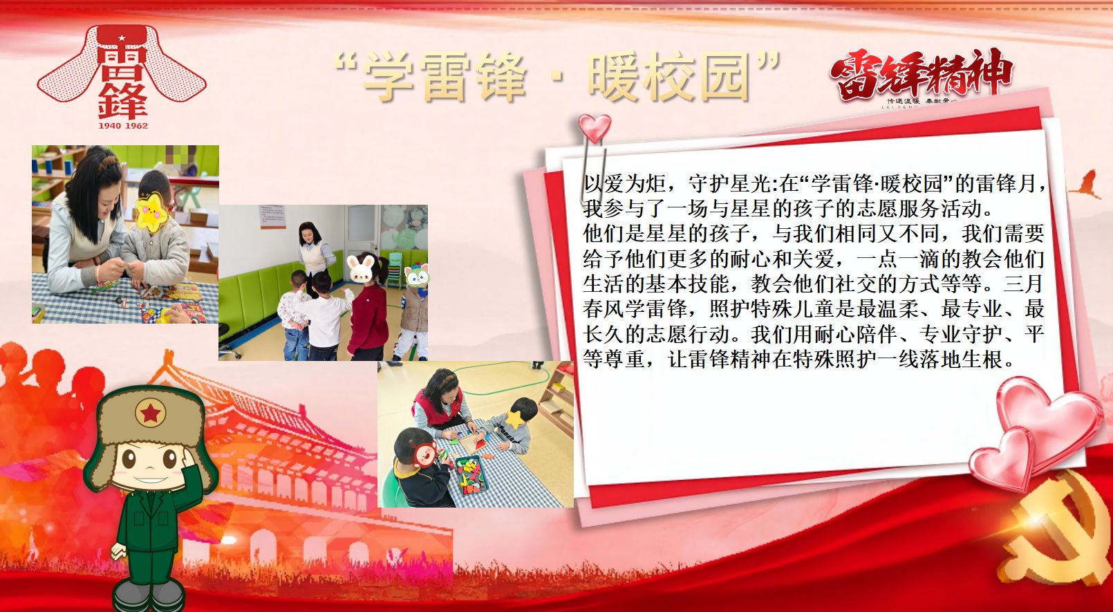 本站讯 3月16日,文化旅游学院以“学雷锋·暖校园”为主题,在有序推进各类志愿服务实践活动的同时,精心策划并同步开展了主题摄影征集活动,用镜头记录校园雷锋精神践行的场景。